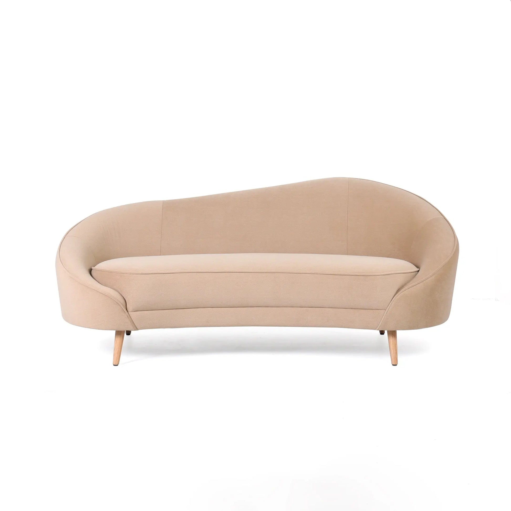 The Taliba Curved Sofa brings a soft, sculptural elegance to modern living spaces, defined by its flowing silhouette and beautifully balanced proportions. Upholstered in a luxurious neutral fabric, this curved sofa offers both visual warmth and everyday comfort, while the sweeping back and seat create a fluid, inviting shape. Gently sloping arms enhance its refined profile, making it a standout piece within contemporary and classic interiors alike.
